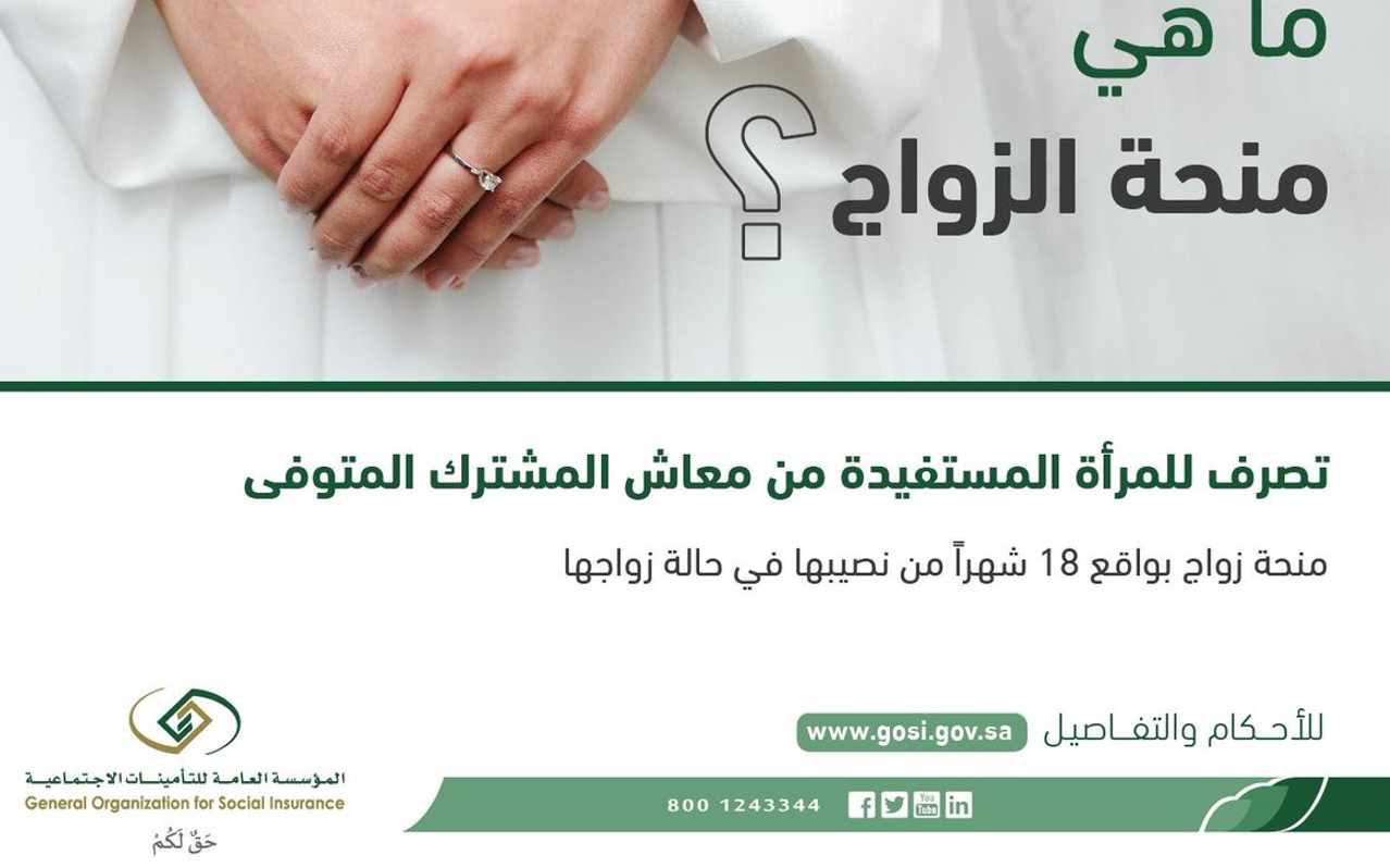 تقدم مؤسسة التأمينات منحة الزواج لكل فرد مرة واحدة فقط.