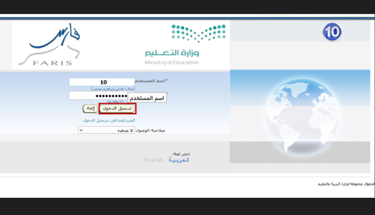 تسجيل الدخول بإدخال اسم المستخدم وكلمة السر.