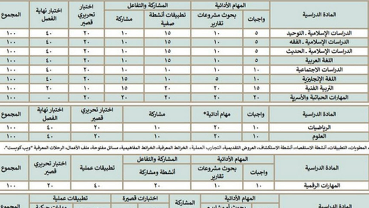 خصصت الوزارة أربعين درجة للاختبارات النهائية خلال كل فصل دراسي.