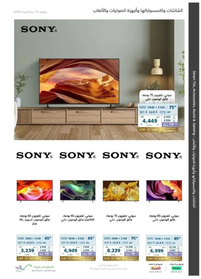 - شاشة سوني بحجم 75 بوصة، بوضوح فائق، بسعر 8,239 ريال بدلاً من 12,999 ريال