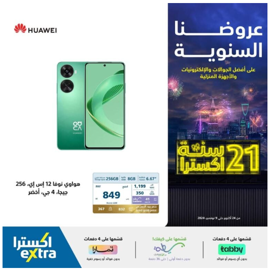 يعتبر هواوي Nova 12 SE من أبرز الهواتف التي تقدمها إكسترا ضمن تخفيضاتها الضخمة بمناسبة الذكرى السنوية، يتميز هذا الهاتف بمجموعة من المواصفات المميزة التي تضمن للمستخدمين أداء قوي وتجربة استخدام رائعة، ومنها: