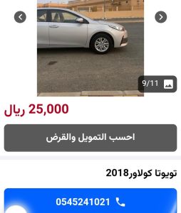 في محايل عسير، تعرض تويوتا كورولا 2018 بسعر 25,000 ريال سعودي، وتشمل: