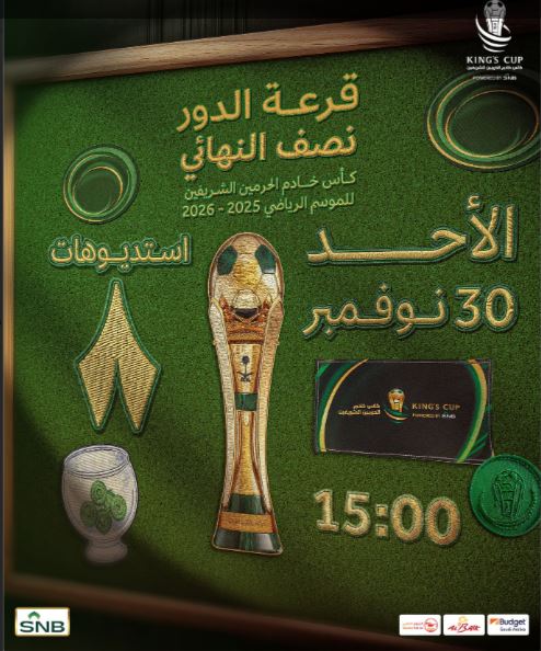 بهذا الإعلان الرسمي من الاتحاد السعودي لكرة القدم، يبدأ العد التنازلي نحو واحدة من أهم محطات الموسم الكروي في المملكة، حيث تتجه الأنظار كلها إلى قرعة نصف نهائي كأس خادم الحرمين الشريفين.