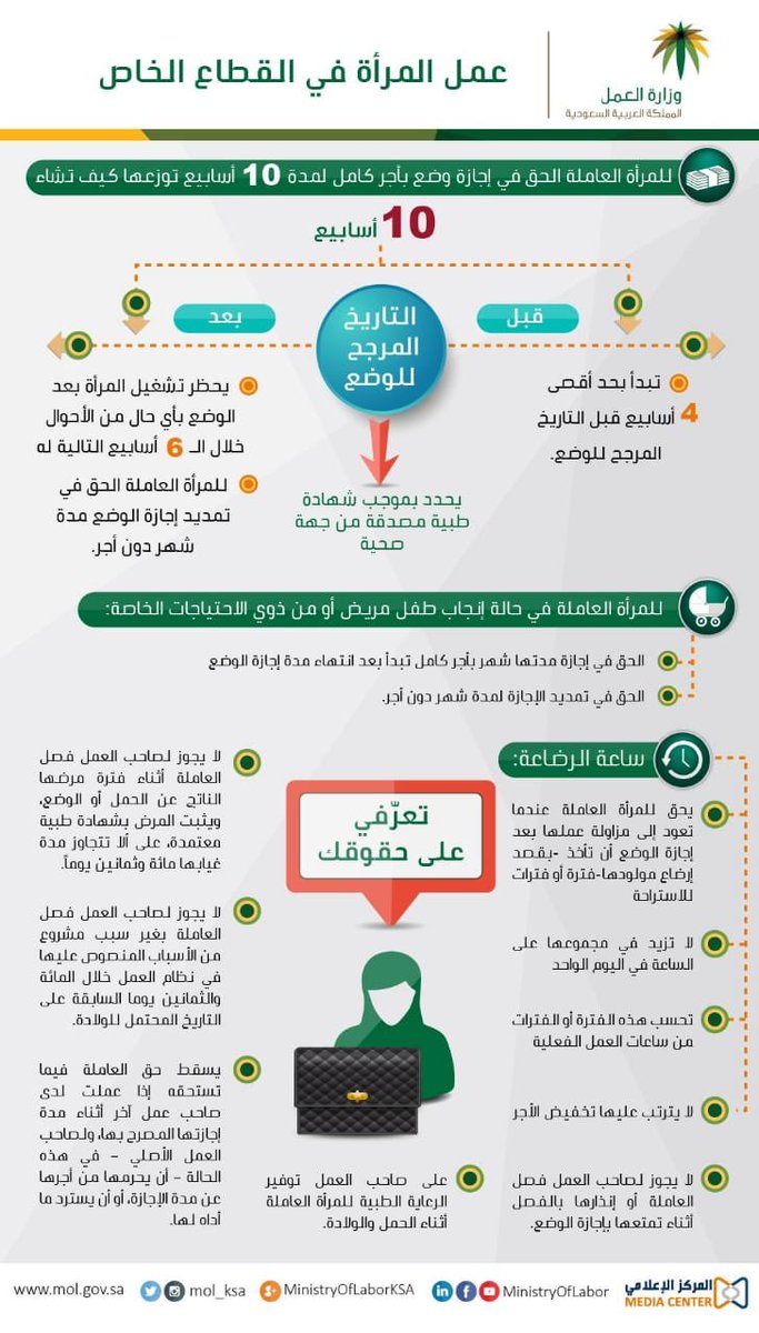 نصت الأنظمة السعودية على مجموعة من الحقوق والضوابط التي ترافق إجازة الوضع لضمان حماية الأم العاملة، ومن أبرزها: