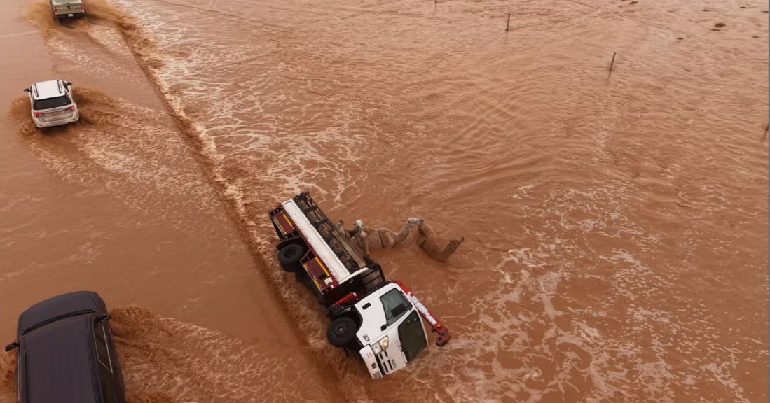 شهدت منطقة شمال مدينة الرياض في المساء حادث لافت، بعدما تسببت السيول الجارفة في انقلاب شاحنة كانت تسير على طريق وادي الطوقي، في مشهد أعاد التأكيد على خطورة عبور الطرق أثناء جريان الأودية، خاصة في أوقات الأمطار الغزيرة.