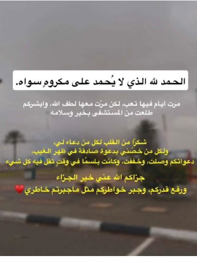 وأشار إلى أن المحبة الصادقة والدعم المعنوي من المتابعين كانا بمثابة بلسم في وقت ثقلت فيه المشاعر وصعب فيه تجاوز الألم.