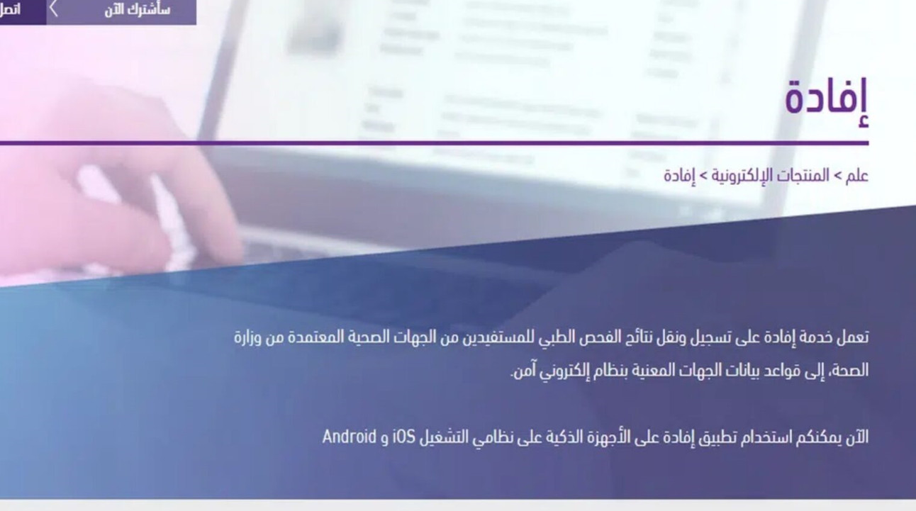 نظام إفادة عبارة عن برنامج إلكتروني يمكن من خلاله إرسال نتائج الكشف الطبي لكافة المستفيدين في وزارة الصحة السعودية، وبهدف النظام إلى تقليل معدل تزوير التقارير الصحية واستبعاد المواطنين الذين يعانون من أمراض معدية للحفاظ على صحة وسلامة المجتمع، ويقدم النظام العديد من الخدمات، ومن أبرزها ما يلي: