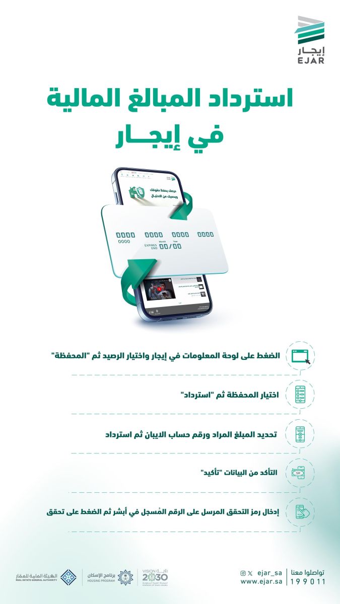 توضح منصة إيجار من خلال حسابها الرسمي في منصة إكس، كيفية تحويل مبلغ الإيجار للمستفيد، حيث أشارت إلى أنه يتم التحويل على الآيبان المضاف في العقد، وفي حال تعذر ذلك يتم التحويل إلى المحفظة، كما أوضحت الخطوات اللازمة لاسترداد المبالغ المدفوعة بسهولة، حيث يمكن القيام بذلك عن طريق الدخول للحساب الشخصي وعمل استرداد للمبالغ من خلال "إدارة الحساب"، ثم الضغط على "المحفظة" وتعيين الحساب البنكي، وكتابة المبلغ المراد استرداده، وإدخال الكود الذي يصل من "أبشر".
