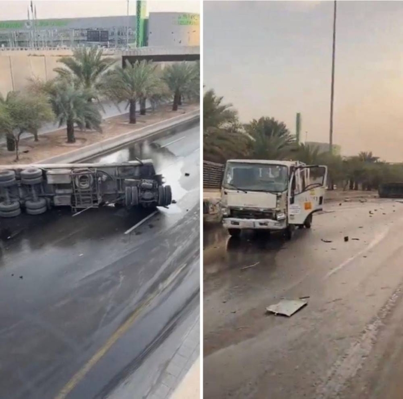 حيث يظهر الفيديو الصهريج وهو مقلوب على الأرض، بينما تظهر مركبتان أخريان متضررتان أيضًا، مما أدى إلى تعطل حركة المرور.