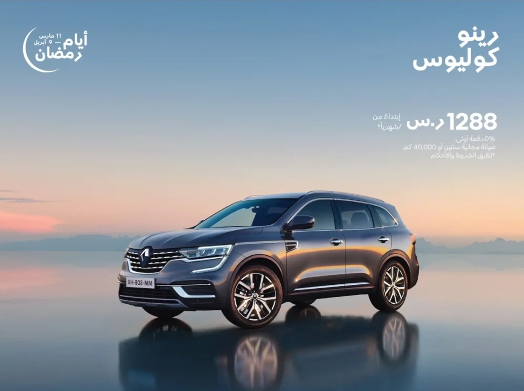 كما يمكن الحصول على عرض رينو كوليوس 2024 سمارت بقسط شهري 1,288 ريال سعودي من توكيلات للتمويل، بالإضافة إلى هدايا مثل صيانة مجانية لمدة عامين.