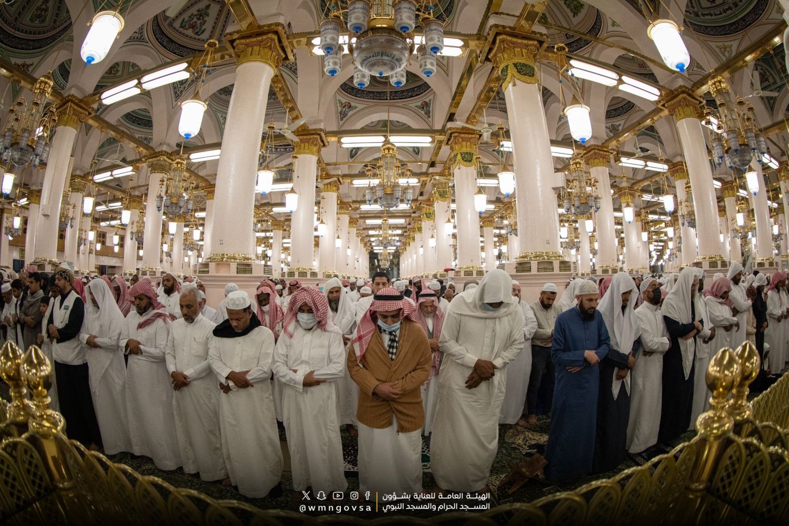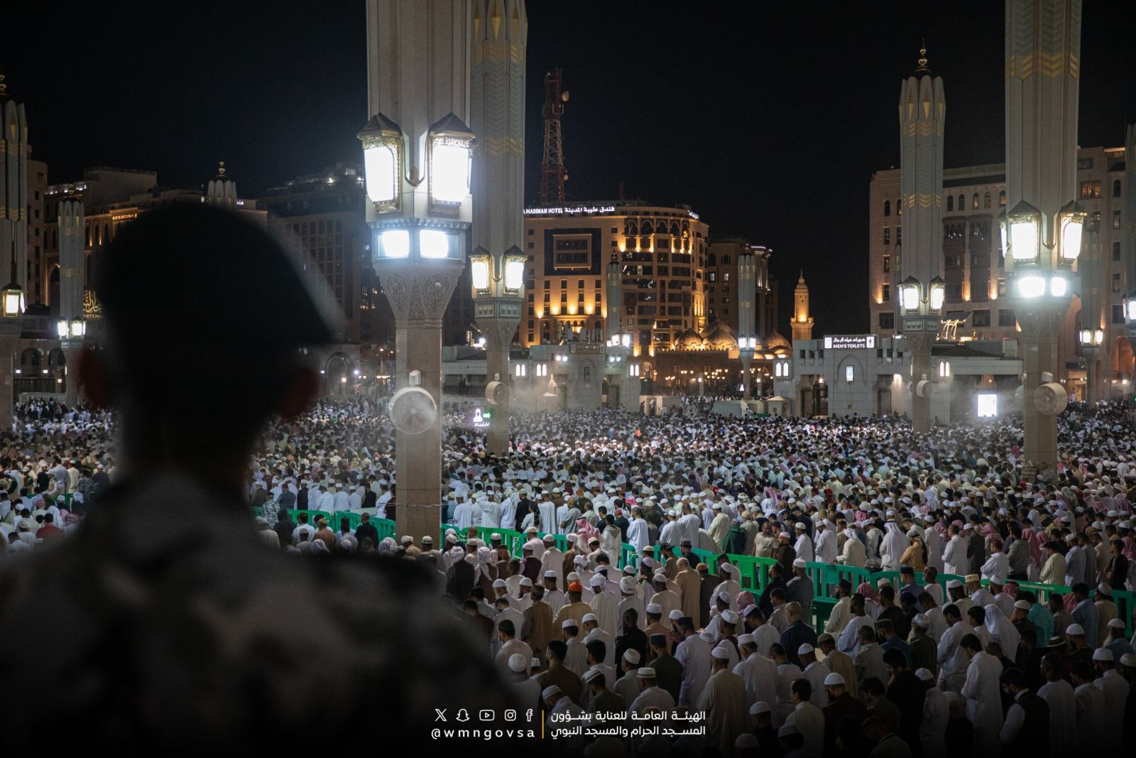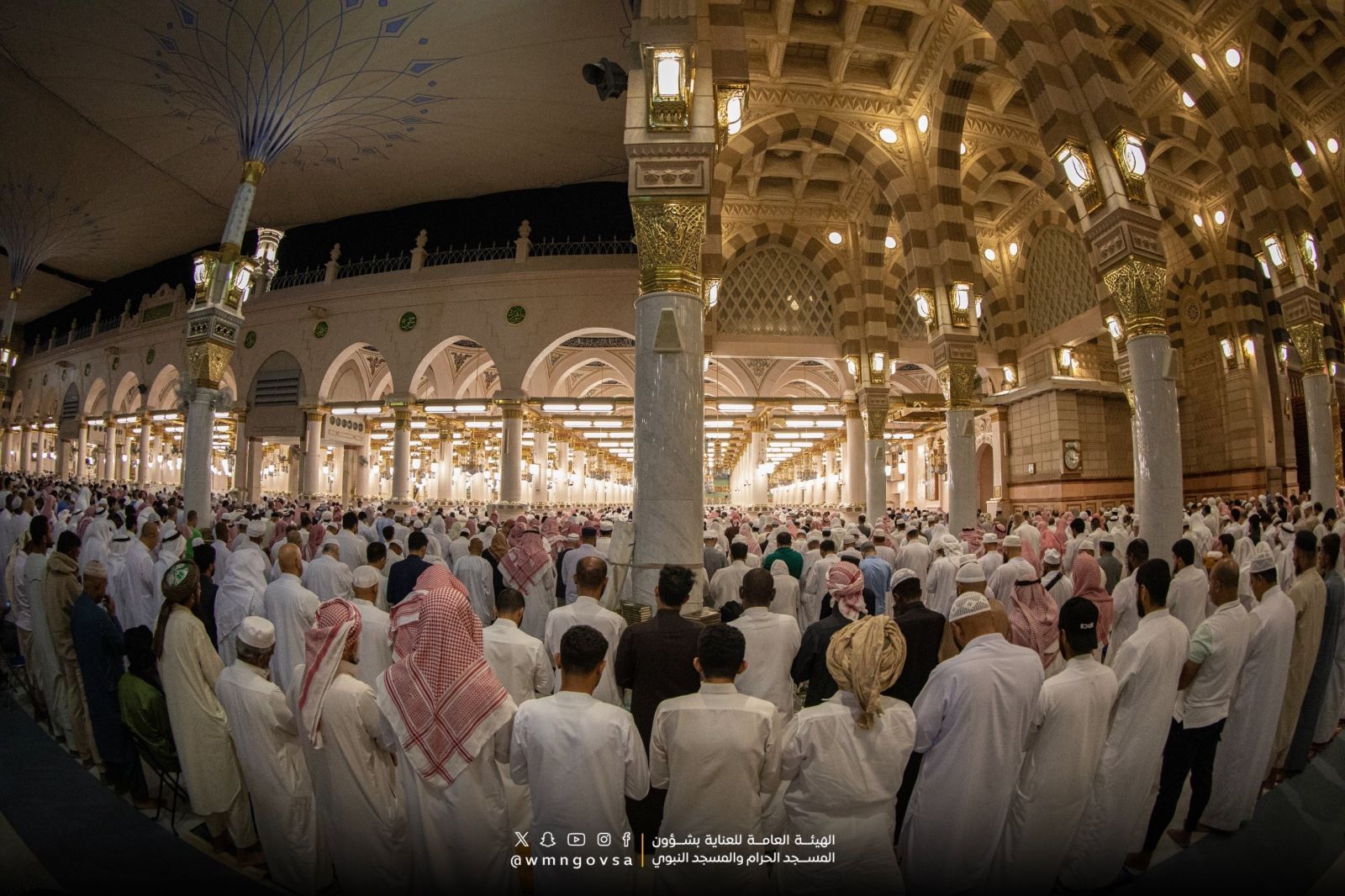 في ليلة السابع والعشرين من رمضان المعظم، أقيمت صلاتي العشاء والتراويح في المسجد النبوي، مع إحياء ليلة القدر المباركة ضمن العشر الأواخر من الشهر، وذلك في أجواء تملؤها الروحانيات والطمأنينة، حيث الأمن والسلام يعمان، والخشوع والاستقرار يسودان.