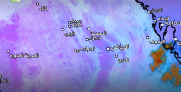 تمتد السحب الماطرة أيضًا لتشمل جنوب شرق المدينة المنورة، حائل، القصيم وشمال غرب الرياض.