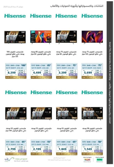 - شاشة هايسنس بحجم 100 بوصة، بوضوح فائق وتردد 120 هرتز، بسعر 8,299 ريال بدلاً من 20,999 ريال
