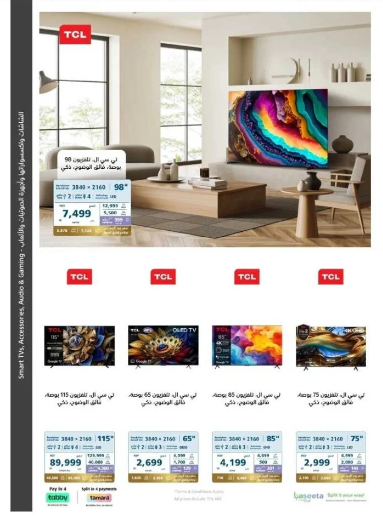 - شاشة تي سي إل سمارت بحجم 75 بوصة، ذكية وذات وضوح فائق، بسعر 2,999 ريال بدلاً من 4,999 ريال