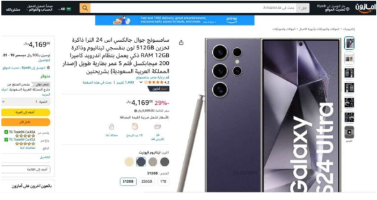 سعر Samsung Galaxy S24 Ultra في أمازون السعودية