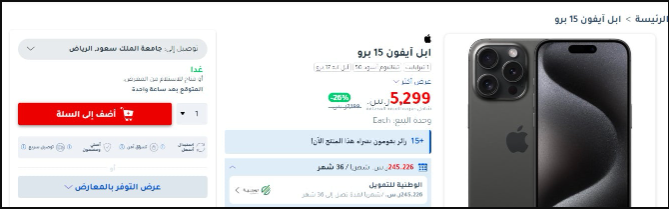 هذا العرض يتيح لك فرصة شراء هاتف iPhone 15 Pro بأقل سعر ممكن، مع تسهيلات في الدفع تمنحك راحة أكبر في تحمل تكلفة الهاتف على مدار فترة طويلة.