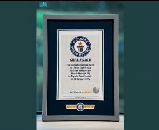 قطار الرياض يحقق رسمياً رقم قياسي جديد في موسوعة غينيس للأرقام القياسية