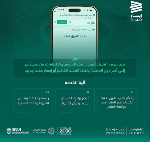 وتأتي هذه الخدمة استجابة للاحتياجات المتزايدة في السوق العقاري، حيث تواجه كثير من الأسر والمستثمرين صعوبات في نقل الحقوق والالتزامات عند الرغبة في تغيير المستأجر، وكانت الحاجة إلى حل إلكتروني سريع وموثوق أمر ملح.