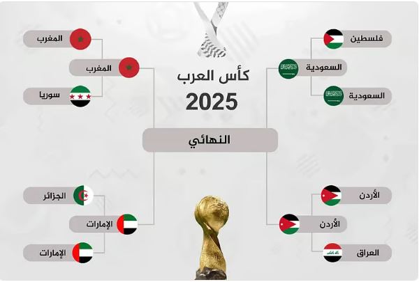 مواعيد مباريات نصف نهائي كأس العرب وموعد مباراة السعودية والأردن
