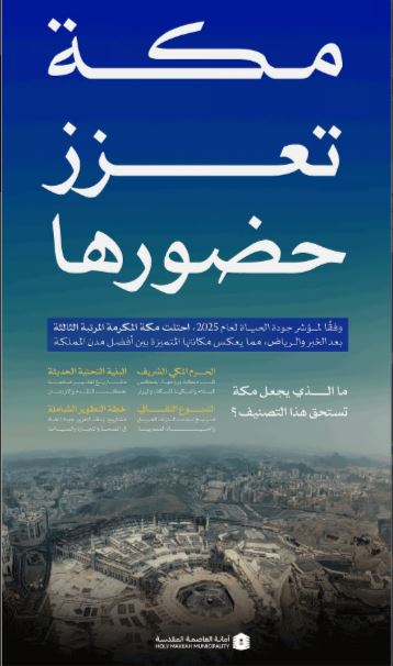 فالمدينة، رغم خصوصيتها الدينية والكثافة البشرية الموسمية التي تشهدها، استطاعت أن تحقق توازن بين خدمة ضيوف الرحمن وتلبية احتياجات السكان اليومية، وهو ما انعكس إيجابا على معايير جودة الحياة المعتمدة في التقييم.