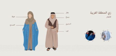 تعكس أزياء المنطقة الغربية التنوع الثقافي الذي تأثرت به المنطقة بحكم موقعها وارتباطها بالحج والتجارة.