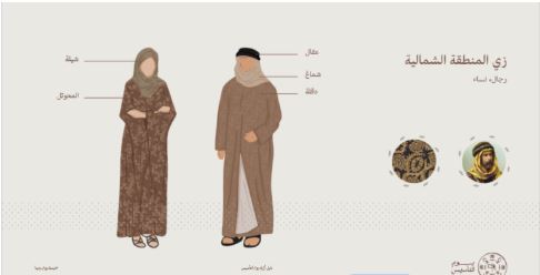 تعكس أزياء المنطقة الشمالية طبيعة البيئة الصحراوية وحياة البادية التي سادت في تلك المناطق قديما.