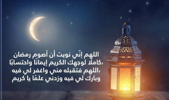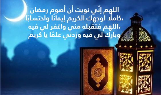 اللهم إني نويت صيام شهر رمضان إيمان بك واحتساب لأجرك، اللهم تقبل مني صيامي وقيامي، واغفر لي ذنوبي، وبارك لي في أيامي وليالي، واجعلني فيه من المقبولين الفائزين.